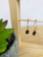 Dormeuses fil doré à l'or fin pendentif soleil et cabochon pierre